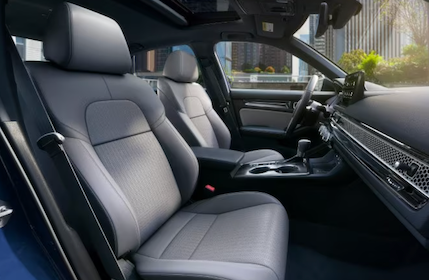 The cockpit of the Honda Civic blends premium feel with user-friendly innovation. Sport Touring Hybrid trims feature a 10.2-inch digital instrument cluster, alongside wireless charging, USB-C, and Google Built-In infotainment. Across all trims, Honda incorporates a premium feel with black headliners, matte chrome vent surrounds, and ambient footwell lighting. Heated steering wheels are now standard on Honda Civic Sport trims and above. Even the base Elegance model benefits from a convenient wireless charging pad. In the Honda Civic Si, interior accents lean into sporty luxury: deeply bolstered sport seats wrapped in dual-density microfiber suede feature red contrast stitching and embossed Si logos. Dashboard and console trims follow suit, strengthening the Si’s driver-centric design.
